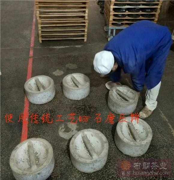 圖四是用石磨來對茶葉進行壓餅,用傳統的手法石磨壓餅使茶葉松而不散。傳統的手工壓餅,是一項不錯的技藝,也有諸多優點。