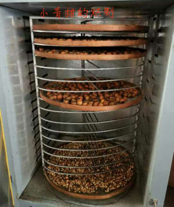 下面的是2018年12月公司用普洱的陳皮與公司的茶葉結合,制作的小青柑。青柑工藝種類的區別主要出現在干燥環節,干燥方式的不同使之形成了不同的風味與口感。烘制時間是18個小時,低溫烘焙,采用60℃左右的溫度,將小青柑烘焙至干燥。時間和成本雖有提高,但比起高溫烘焙工藝來說,口感更好,提香適當,兼以保持了活性,為后期轉化保留了空間。