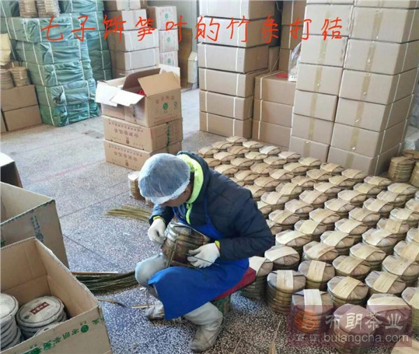圖二是將用筍葉包裝好的七子餅用竹條進行捆綁打結,目的是為了防止筍葉和茶餅的脫落,更方便于攜帶。
