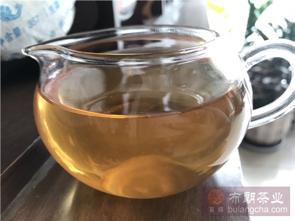 湯色黃而透亮具有明顯的生茶的品質,蜜香濃郁,杯底留香。唇齒之間先是苦澀卻消失得很快,喉嚨里更多的是溫潤。回甘持久。